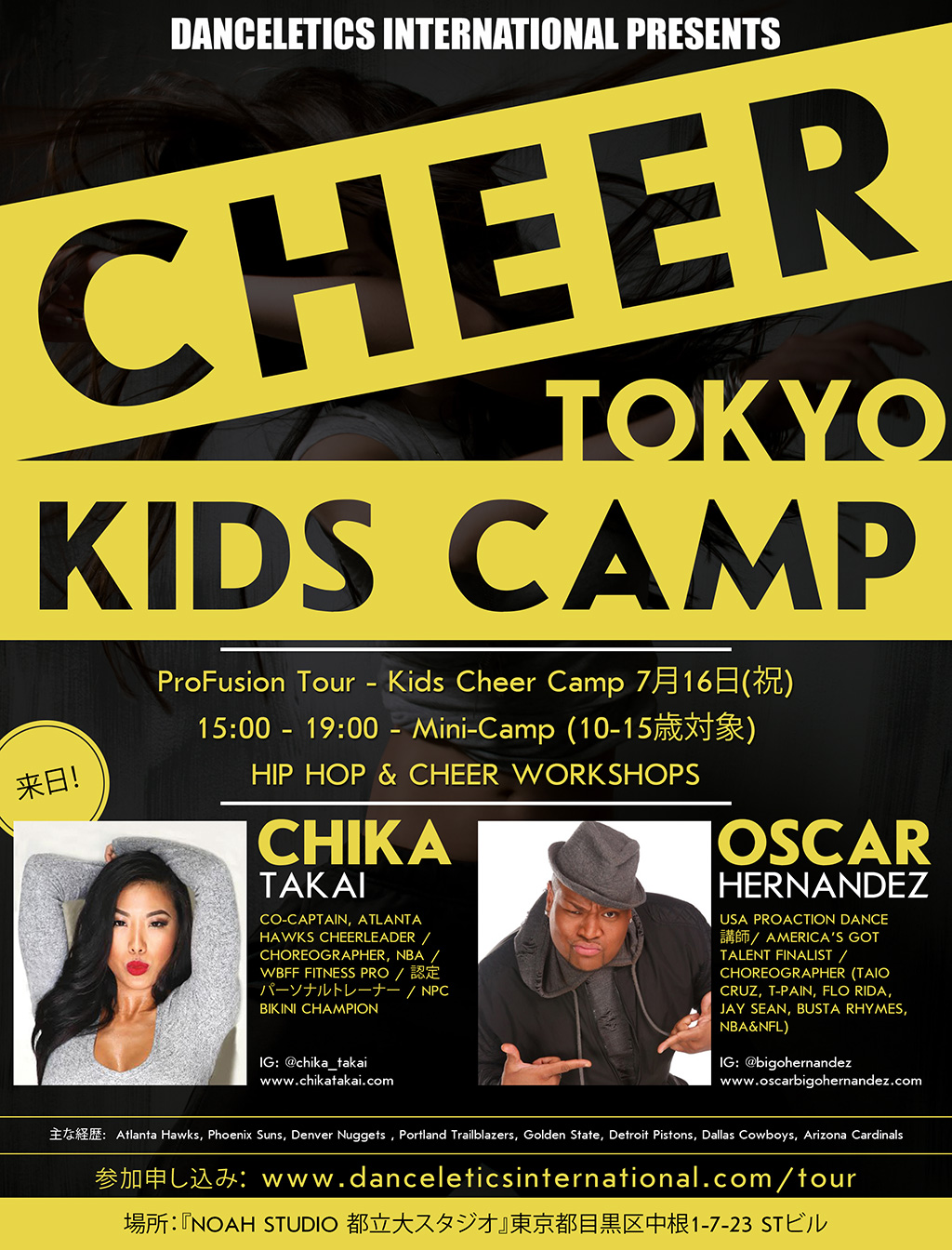 dance workshops, team training camps, fitness training and cheer camps instructed by