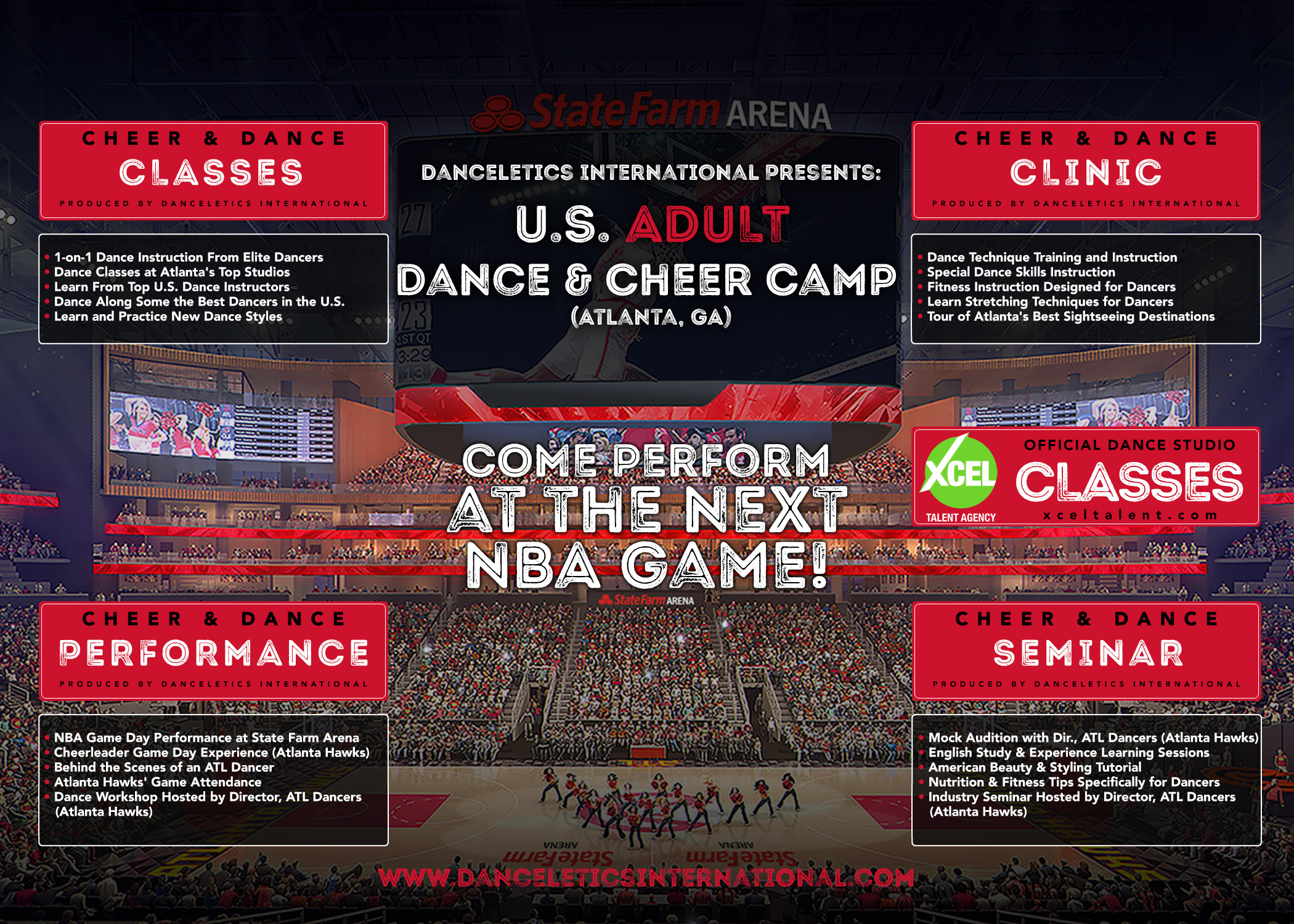 Our Camp is geared for aspiring dancers and cheerleaders who dream to achieve a coveted spot as a NBA or NFL cheerleader or the professional cheerleading level in their own country. The highlight of the Camp is providing the ability for participants to perform center court at State Farm Arena at a NBA Atlanta Hawks' game and receive lessons from some of the best dancers in the world. Participants will also have the opportunity to learn from and ask any question to an actual NBA cheerleading director through our seminars - what to expect as an pro cheerleader, how to improve your dance skill, and what to wear to pro auditions will all be topics of discussion. With the goal of preparing participants for the future, DI has included mock auditions and hair, makeup and audition apparel sessions with the Director of the ATL Hawks. Our Camp is designed to create the most value imaginable.